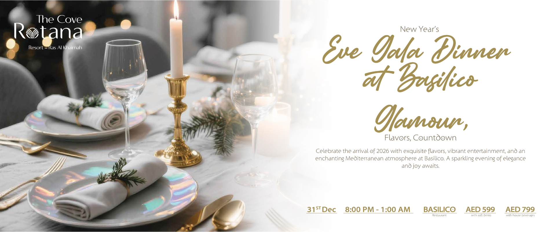 Dec 31 31 Dec 2025 @ 8:00 pm - 1 Jan 2026 @ 1:00 am New Year’s Eve Gala Dinner-Basilico Restaurant AED 599