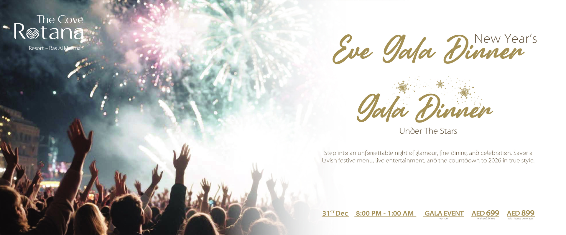 Dec 31 31 Dec 2025 @ 8:00 pm - 1 Jan 2026 @ 1:00 am New Year’s Eve Gala Dinner–Under the Stars AED 699